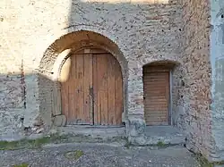 Do tvrze se vchází branou vsazenou do renesančního traktu na nádvoří, na levé straně lze poté spatřit původní gotickou část.[27] Na jejím západním okraji zřetelně vyčnívá nejstarší část – snížená věž. Ve výši poschodí je zřetelná zazděné ostění někdejšího dveřního otvoru, kudy se v období středověku po žebříku vstupovalo do jedné ze světnice, v pozdějším období do přistavěného křídla. Prosvětlení této světnice je zajištěno špýcharovými okny, strop dřevěný, podlaha dlážděná čtvercovými dlaždicemi. Že světnice vede průchod s pozdně–gotickým portálem do velkého sálu, ve kterém byla během rekonstrukčních prací v polovině 80. let objeveny dva krby a zazděná renesanční okna.[27] Ze sálu posléze vede průchod do přízemí věže, které původně sloužilo jako sklep a spižírna bez oken, ta byla po roce 1720 přebudována na kapli. K ní přiléhají další dvě oddělené místnosti, v nichž do roku 1806 bydlel místní kaplan.[27]