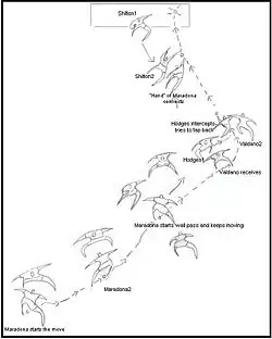 - ↑ V témže zápase vstřelil po samostatné akci z poloviny hřiště Maradona i druhý argentinský gól, který byl vyhlášen gólem století. (viz web FIFA Archivováno 4. 6. 2008 na Wayback Machine.)
