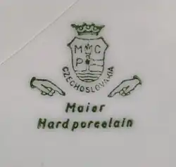V továrně se vyrábělo užitkové bílé zboží jako hrnky na kávu, talíře, mísy a misky, často bez dekorace, ale mělo kvalitní, velmi tvrdý střep. Nádobí bylo značeno tištěnou značkou červené nebo zelené barvy pod glazurou, ve tvaru erbovního štítu pod korunkou s iniciálami MCP s rukou, držící pochodeň, nebo se jmenovkou majitele.[6]