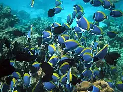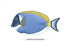 - ↑ Acanthurus leucosternon [online]. [cit. 2022-04-19]. Dostupné v archivu pořízeném dne 2022-06-29.