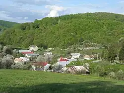 Obec má rozptýlenou potoční řadovou zástavbu. V historické zástavbě byly až do 90. let 19. století obydlí pouze na pravé straně Bodružalíka. Levostranné břehy jsou vyvýšené a je z nich komplikovanější přístup k vodě. Proto musely být kopány studny, s nejistým výsledkem. Na levé straně byla jen škola v blízkosti přítoku z Pelepčeho, cerkev a dům Hibschmanovy rodiny byl zase v blízkosti přítoku potoka ze Segin.