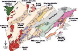 1. a b c d e f CHÁB, Jan, et al. Stručná geologie základu Českého masivu a jeho karbonského a permského pokryvu. 1. vyd. Praha: Česká geologická služba, 2008. ISBN 978-80-7075-703-1. S. 283.