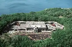 Zbytky baterie Cheney na západě Corregidoru. Baterie střežila vjezd do Manilské zátoky svými dvěma šestipalcovými (152,4 mm) děly.