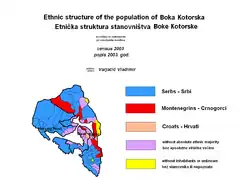 V současné době představují relativní většinu obyvatel měst a vesnic na břehu Boky Srbové, následují je Černohorci a Chorvati. Historicky byla Boka osídlená značným počtem italsky mluvícího obyvatelstva.