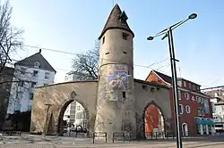 Byla v minulosti známa pod několika jmény, často velmi lidového charakteru. Současný název získala kolem roku 1900. Původně měla na vrcholu cimbuří a špičatá střecha[1] byla přistavěna v roce 1700 - současná podoba vznikla po roce 1890. Okolní hradby byly zničeny v roce 1840. Freska (z roku 1893), která zdobí věž, je od Ferdinanda Wagnera a zobrazuje starostu Ulricha z Dornachu při napadení města Martinem Maltererem v roce 1385. Byla obnovena v roce 1970 Bernardem Latunerem.
