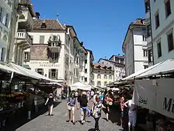Biskupové přemístili sídlo zpátky do údolí a založili tržiště. Bolzano od svého založení a povýšení do městského stavu před více než 800 lety byla obchodním centrem mezi dalšími významnými obchodními městy Benátkami a Augsburgem. Na výstavy, které se konaly čtyřikrát do roka, přicházeli obchodníci ze severu a jihu. Z tohoto důvodu byl roku 1635 zřízen Merkantilmagistrat (obchodní soud), který se v době trhů skládal ze 2 německých a 2 italských radních.