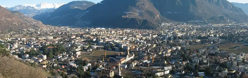 Západně od historické části Bolzana protéká řeka Talvera, na straně u starého města je louka s výhledem na okolní vrchy. Západně, za řekou, leží čtvrti postavené v průběhu 20. století Gries-S.Quirino a Europa-Novacella. Jižně pak leží čtvrť Oltrisarco-Aslago.