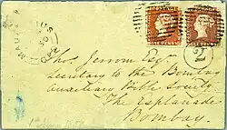 Bombajský dopis má formu složeného dopisu, který byl napsán reverendem Langrishem Banksem 1. ledna 1850 a opatřen dvěma červenými mauricii (podle číslování Jean-Baptiste Moense XVIII a XIX). Adresátem byl Thomas Jerrom v Bombaji („Thos. Jerrom Esqr. / Secretary to the Bombay / Auxiliary Bible Society / The Esplanade / Bombay.“). V levé části adresní části je kulaté razítko „MAURITIUS G.P.O.“ s datem 4. ledna 1850.