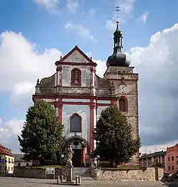 Kostel svatého Mikuláše byl založen současně s městem. Prvně je zmiňován roku 1282. V roce 1526 byla dostavěna mohutná hranolová věž s ochozem. Starý vyhořelý kostel byl zbořen v roce 1738 a na jeho místě byl vystavěn mezi lety 1739 a 1750 nový barokní kostel. Poslední opravy kostela byly zahájeny roku 1990, při nich získala věž novou báň krytou měděným plechem. Opraveny byly rovněž fasády a zahájeny opravy fresek v interiéru kostela. V současnosti probíhají opravy fresek a restaurování hlavního oltáře. Interiér kostela zdobí nástěnné malby z druhé poloviny 18. století. Hlavní oltář vyhotovil rodák z nedaleké Stráže sochař Johann Christoph Artschlag.