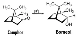Borneol muže být syntetizován redukcí kafru pomocí Meerwein–Ponndorf–Verleyovy redukce (je to vratná reakce).