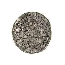 Zadní strana: k=rist=us (b)i | bius=ank=uis fifiþ | fit=am itirn=a|m k=ustotaþit
