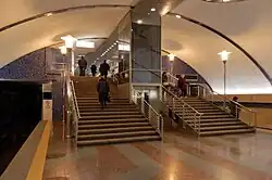 ![]() ![]() ![]() Horní obrázek je pohled na stanici Dolní obrázek vlevo je pohled na vstupní turnikety u výstupu ze stanice Dolní obrázek vpravo je pohled na výtah od nástupiště | |||||||||||||||||||||||||||||||||||||||||||||||||||||||||||||||||||||||||||||||||||||||||||||||||||||||||||||||||||||||||||||||||||||||||||||||||||