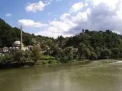 Dále řeka protéká obcí Žepče a za Zavidovići se do ní vlévá Krivaja. Dále protéká městy Maglaj a Doboj. Za druhým uvedeným se do ní vlévají řeky Usora a Spreča. Severně od Doboje se hluboké údolí řeky postupně otevírá mírně zvlněné Bosenské krajině. Řeka se zde rozlévá do řady ramen. Za městem Modriča a Bosanski Šamac se vlévá do Sávy na hranici s Chorvatskem.