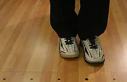 Bowlingová obuv je specifická tím, že její kožená podrážka je vpředu – v místě špičky – kluzká, oproti patě, která neklouže. Tato její vlastnost se využívá při poslední fázi odhodu bowlingové koule.[43] Speciální boty jsou nutné také proto, aby při hře v běžných botách nedošlo k poškození povrchu v místech rozběhu.[14][36] Pokud hráč vlastní bowlingové boty nemá, je obvykle možné si je v bowlingové herně zdarma nebo za poplatek půjčit.[36][53] Jsou však i takové herny, kde speciální boty nejsou vyžadovány.[54]
