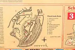 - ↑ a b c d DURDÍK, Tomáš. Ilustrovaná encyklopedie českých hradů. 2. vyd. Praha: Libri, 2002. 736 s. ISBN 80-7277-003-9. Heslo Brada, s. 77.