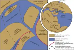 - ↑ a b Plašienka, D.; 2002: Origin and growth of the Western Carpathian orogenetic wedge during the mesozoic. Archivováno 7. 10. 2011 na Wayback Machine. in Michalík, J., Šimon, L., Vozár, J., Geologica Carpathica Special Issues, 53, Proceedings of XVII. Congress of Carpathian-Balkan Geological Association Bratislava, September 1st - 4th 2002
