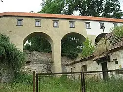 Při pozdně gotické přestavbě bylo na jižní a východní straně postaveno, na tehdejší dobu, kvalitní vnější opevnění. Tvořil je vnější příkop, za kterým se v upravené podobě dochoval mimořádně široký val doplněný v jihovýchodním nároží okrouhlou zemní baštou. Široká koruna valu umožňovala využití děl.[3]