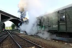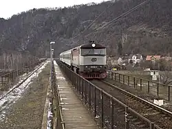 Lokomotiva řady 749 v čele odkloněného budějovického rychlíku
