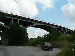 Přípravné práce byly zahájeny roku 1949, v roce 1952 započala stavba oblouků. V roce 1955 byly úspěšně provedeny zatěžovací zkoušky, ale železniční doprava na mostě byla zahájena až v sobotu 30. května 1964 při zprovoznění celé jednokolejné železniční jižní spojky. Do té doby most sloužil statickým zkouškám různých typů lokomotiv při různých rychlostech, testům dynamiky stavebních konstrukcí apod.[zdroj?]