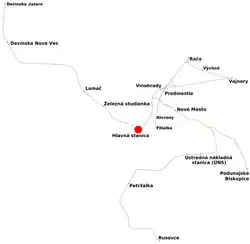 - ↑ Železničná stanica Bratislava hl.st.. VLAKY.NET [online]. [cit. 2024-09-21]. Dostupné online. (slovensky)