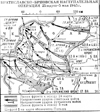 Počátkem roku 1945 se přiblížila sovětská vojska k území Moravy ze tří stran. 12. ledna zahájila Rudá armáda mohutnou ofenzívu – Viselsko-oderskou operací, při níž Sověti postupovali rychlým tempem k Odře. 18. ledna provedli Němci útok na Sověty obklíčenou Budapešť, ovšem po těžkých bojích bylo hlavní město Maďarska 13. února Sověty dobyto. 16. března 1945 vojska 2. a 3. ukrajinského frontu zahájila ofenzívu směrem na Vídeň, přičemž na rakouské území vstoupila Rudá armáda 30. března. Dne 4. dubna 1945 byla těmito jednotkami Rudé armády osvobozena i Bratislava.