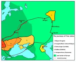 - ↑ Have Researchers Found the Genetic Traits of Friar Julian’s ‘Eastern Magyars’? [online]. Hungarytoday.hu [cit. 2023-10-05]. Dostupné v archivu pořízeném dne 2023-10-05. (anglicky)