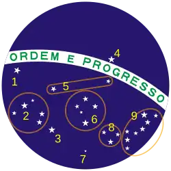 Počet hvězd na vlajce (27) odpovídá počtu spolkových států brazilské federace (26) a jednoho federálního distriktu (Distrito Federal do Brasil), s hlavním městem Brasílií.