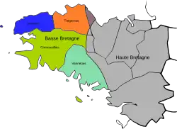 - Kerneveg/C'herneveg (cornouailleské nářečí) – mluví se jím v okolí Cornouaille