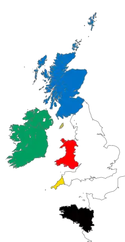 | Bretonština | Kornština | Velština | Irština | Skotská gaelština | Manština | Angličtina | Čeština |