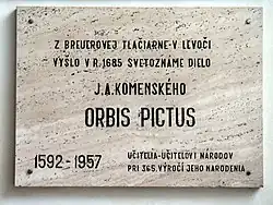 Daniel Sinapius, který poslední čtyři roky svého života působil v Levoči jako kazatel a gymnaziální inspektor, připravil pro tiskárnu mimo jiné další vydání díla J. Třanovského Cithara sanctorum a překlad Komenského Orbis pictus do slovenštiny. Tato čtyřjazyčná (latinsko-německo-maďarsko-slovenská) verze Světa v obrazech vyšla v roce 1685, jak připomíná pamětní deska na zdi budovy.