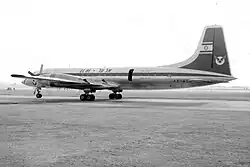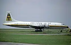 ![]() BOAC Britannia Model 312 (G-AOC) na transatlantickém letu nad Manchesterem v roce 1962 | |
