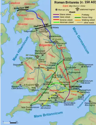 Poté, co se Římané zmocnili jihu ostrova, obrátili svoji pozornost na území nynějšího Walesu. Zdejší kmeny Silurů (Silures) a Ordoviků (Ordovices) setrvávaly v nesmiřitelném nepřátelství vůči Římanům a po několik prvních desetiletí představovaly jejich nejzarputilejší protivníky, třebaže docházelo i k občasným revoltám římských spojenců, jako byli Brigantové (Brigantes) nebo Icenové (Iceni). Silury vedl Caratacus, který se v boji proti římskému správci Publiu Ostoriovi Scapulovi uchýlil k účinné gerilové taktice. Konečně v roce 51 přiměl Ostorius Carataca k bitvě v otevřeném poli, v níž římský vojevůdce přesvědčivě zvítězil. Vůdce Britanů hledal útočiště u Brigantů, jejichž královna Cartimandua však osvědčila svoji věrnost Římanům a Carataca jim předala. Caratacus byl poté odveden do zajetí v Římě, kde si důstojnou řečí během Claudiova triumfu vysloužil od císaře milost. Silurové ale nebyli dosud zpacifikováni a do čela odboje proti Římanům se postavil Cartimanduin bývalý manžel Venutius.