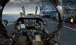 - Záběry průhledového displeje HUD letounu Harrier II během letu na youtube.com. (anglicky)