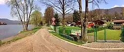 U řeky Labe se mezi Říční ulicí a Průčelským potokem nachází kemp poskytující ubytování v chatkách, pokojích, prostranství pro stany a soukromý bazén a hřiště na tenis a volejbal. Kemp je v provozu od 28. dubna do 14. října a v jeho areálu sídlí škola vodního lyžování (více v sekci Sport).[35]