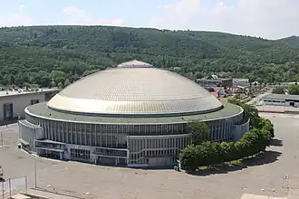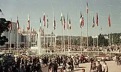 ![]() Pohled na výstaviště z výškové administrativní budovy u vstupní brány | |