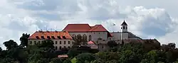 V Brně byl markraběcí dvůr,[35][36] zasedal zde moravský zemský sněm a další vrcholné politické instituce tehdejší Moravy.[30][pozn. 3] Brno je bývalé moravské hlavní město a od středověku je zejména spolu s Olomoucí jejím historicky nejvýznamnějším městem.