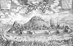 Pevnostní město Brno kolem roku 1700 s barokním bastionovým opevněním a citadelou na Špilberku