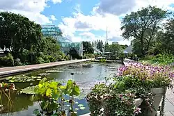 - Lily Pool Terrace - terasa, která obsahuje dvě velké nádrže s lekníny a koi kapry, je obklopena záhony s jednoletými a víceletými trvalkami;