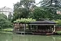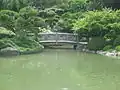Na zahradě je vytvořena napodobenina starověkých zahrad. Místní zahrada o velikosti 1,2 ha obsahuje kopce, vodopád, rybník, a ostrov, všechno uměle vytvořeno. Pečlivě umístěné skály mají vedoucí roli v úpravě. Mezi důležité architektonické prvky v zahradě patří dřevěné mosty, kamenné lucerny, pavilony, brána, a svatyně šintoismu. Rybník je plný japonských koi kaprů, návštěvníci si mohou vychutnat prohlížení prvky podél cesty.