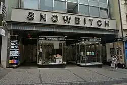 Firma svůj počin zdůvodnila potřebou mít na budově svůj obchodní název. Kritice se ovšem nelíbí, že název obsahuje vulgarismus. Snowbitch je slangový název pro snowboard, který se ujal v 90. letech a z angličtiny by se dal volně přeložit jako „sněhová čubka“. Proti tomu se firma obhajuje, že jde o slangový název pro fenu a kdyby to byla vulgarita, nemohla by být zaregistrována. Proces odstranění nápisu se ovšem ukázal být velmi zdlouhavý a problematický.[4][5] Teprve v roce 2021 soud rozhodl o odstranění nápisu a návratu k tomu původnímu. Obchod Snowbitch mezitím skončil.[6]