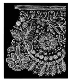 - ↑ a b c Powys: Lace and Lace Making, Courier Corporation 1001, ISBN 9780486418117, str. 15.22