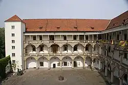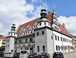 - Radnice – renesanční stavba z dílny Jakoba Parra a Bernharda Niurona postavená uprostřed hlavního náměstí v letech 1569–1577; dochovala se část původního interiéru, zejména Velký stropní sál s modřínovým stropem z roku 1648 a v severním křídle raně rokokový Radní sál z roku 1746; renesanční portál na jižní straně pochází z měšťanského domu zbouraného v roce 1926;[12]