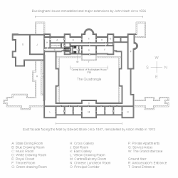 Tato rekonstrukce vytvořila základ vzhledu, který má palác dodnes s výjimkou východního křídla směrem k Mall. Na tomto místě byl v té době postaven triumfální Mramorový oblouk. Náklady na stavbu tohoto oblouku činily 34 450 £ a byl používán jako královský vstup. Jiří IV. měl v úmyslu postavit na jeho vrcholu svoji bronzovou jezdeckou sochu ale protože zemřel před jejím dokončením rozhodl parlament o jejím umístění na Trafalgarské náměstí.