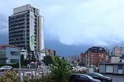 Výšková budova je nápadná především díky kontrastu bílého obkladu a tmavým panelům, stejně jako nápadně zkoseným stěnám u prvních třech pater. Má půdorys bloku orientovaného v use ulice Isla Boletini. Vystavěna byla v letech 1978 až 1984 podle návrhu srbského architekta Dragana Kovačeviće. Kovačević vyhrál se svým týmem architektů veřejnou soutěž vypsanou v roce 1977.