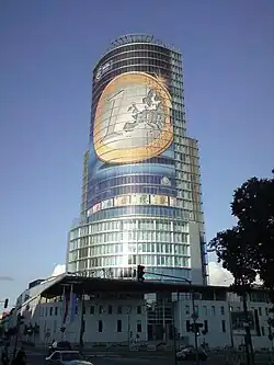NBS v srpnu roku 2008 s připravovaným přechodem na euroměnu využila skleněný plášť centrální budovy jako reklamní médium a pokryla povrch budovy vyobrazením jednoeurové mince spolu s logem "Naše měna", logy Evropské centrální banky, NBS, a vyobrazením sedmi nominálů eurobankovek (viz foto). Tato reklama byla odstraněna koncem dubna roku 2009.