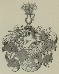 Erbem rodu byl štít křížem rozdělený na čtyři pole, v prvním a čtvrtém poli byla stříbrná konvice, ostatní pole byla stříbrná, klenotem byla stříbrná konvice s kytkou (chocholem).