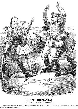 Následně v roce 1914 se Rumunsku podařilo prosadit svého kandidáta na trůn Albánského knížectví a podpořit jeho vládu nasazením vojenských sil až do síly praporu.[12] Působení Rumunska jako významné mocnosti tak začalo Bukurešťskou smlouvou z roku 1913 a přes krátké přerušení za první světové války od října 1916 do listopadu 1918 trvalo až do druhé světové války.
