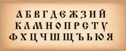 | přepis: | a | b | v | g | d | e | ž | z | i | j | k | l | m | n | o | p | r | s | t | u | f | h | c | č | š | št | ă | j | ju | ja |