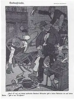 - ↑ Die Muskete, VII (31. Dezember 1908), Nr. 170, S. 109; abgedruckt in Peter Becher, Jozo Džambo: Gleiche Bilder, gleiche Worte. Österreicher und Tschechen in der Karikatur (1848–1948). München 1997, S. 163. (německy)