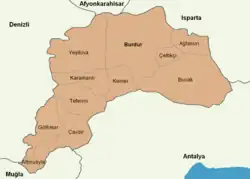 Burdurská provincie se administrativně člení na 11 distriktů: